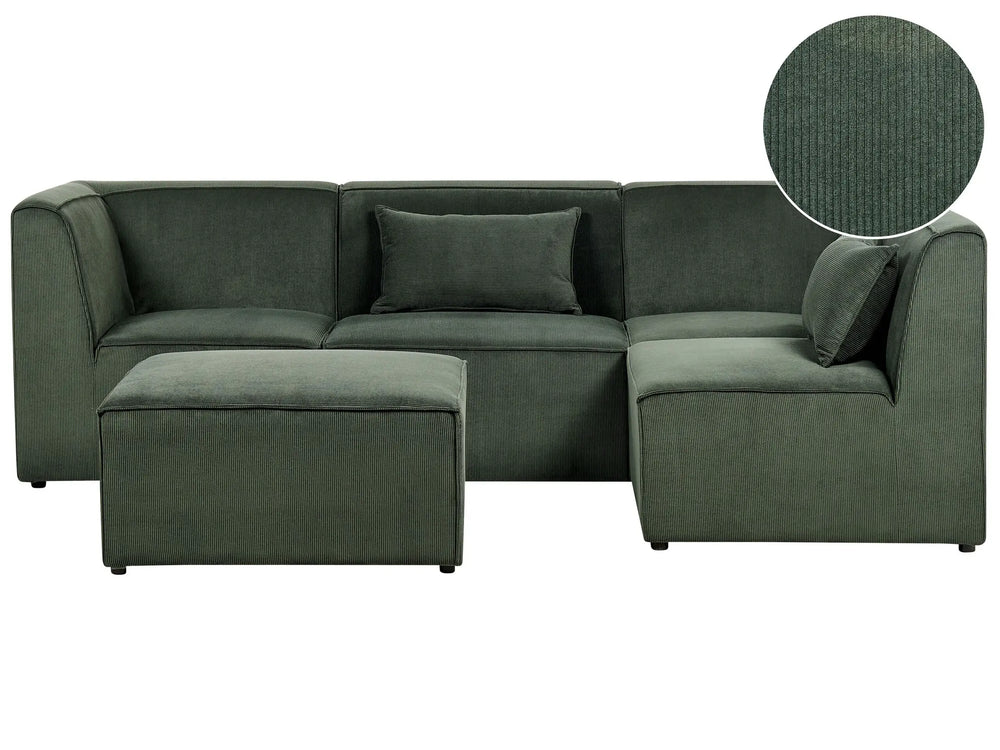 Modular Left Corner 4 Seater Sofa Dark Green Corduroy with Ottoman 4 Seater Sectional Sofa Modern Design Beliani