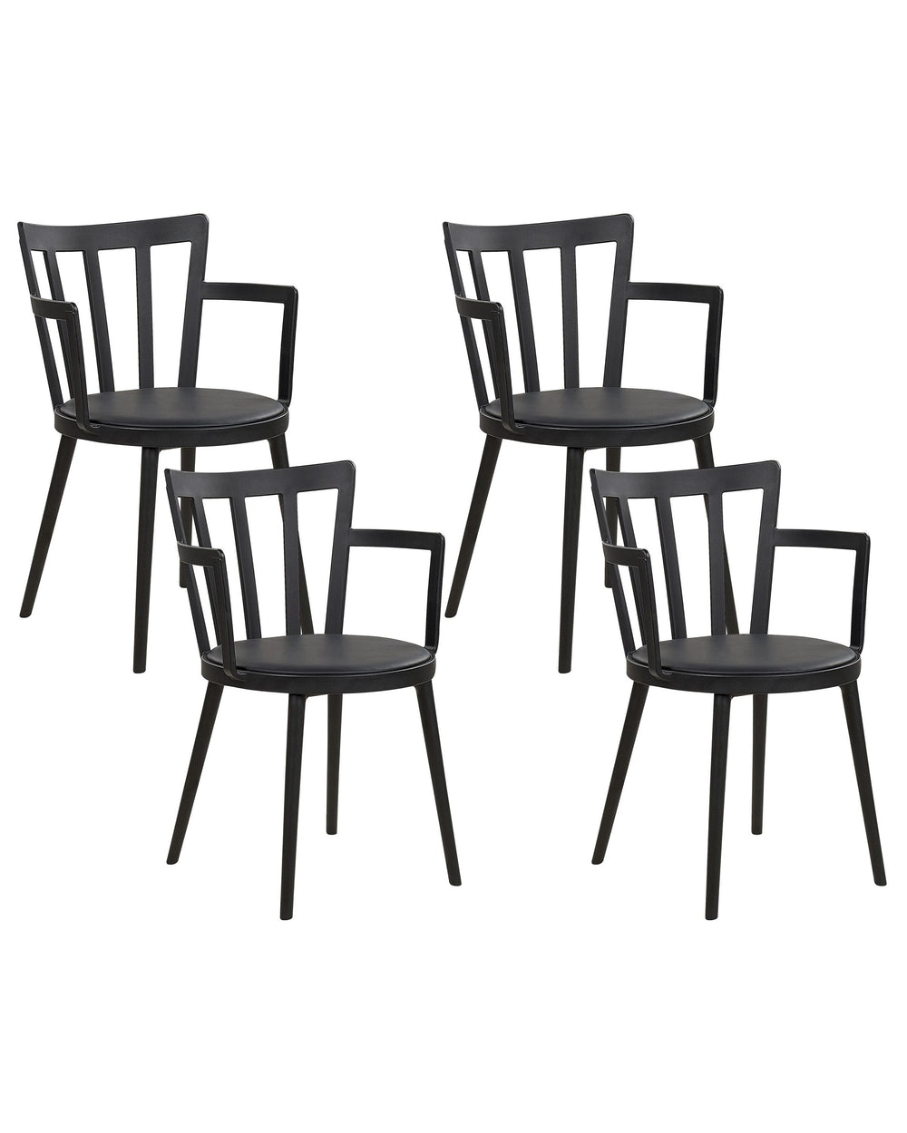 Set of 4 Dining Chairs Black Synthetic Padded Seat Faux Leather Open Back with Armrests Modern Minimalist Living Room Beliani