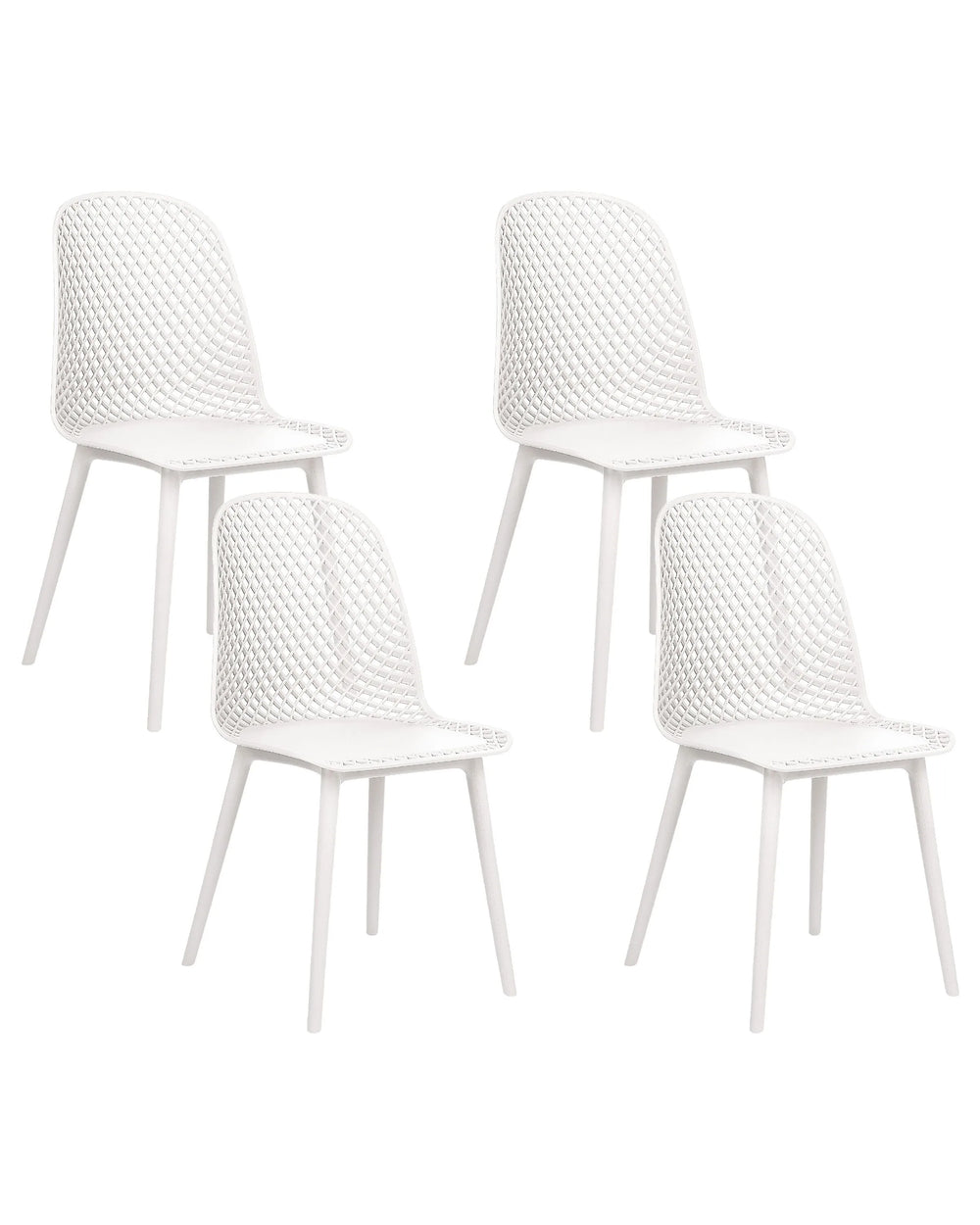 Set of 4 Dining Chairs White Synthetic Seat and Legs Open Net Design Backrest Modern Minimalist Beliani