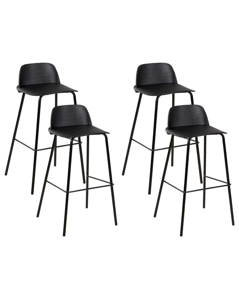 Set of 4 Bar Stools Black Plastic Seat Metal Legs 90 cm Synthetic Counter Kitchen Chair Modern Beliani