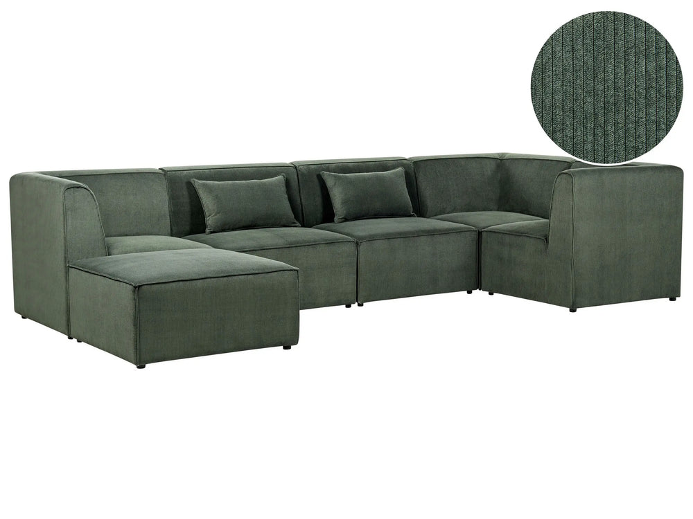 Modular Left Corner 5 Seater Sofa Dark Green Corduroy with Ottoman 5 Seater Sectional Sofa Modern Design Beliani is backordered and will ship as soon as it is back in stock.
