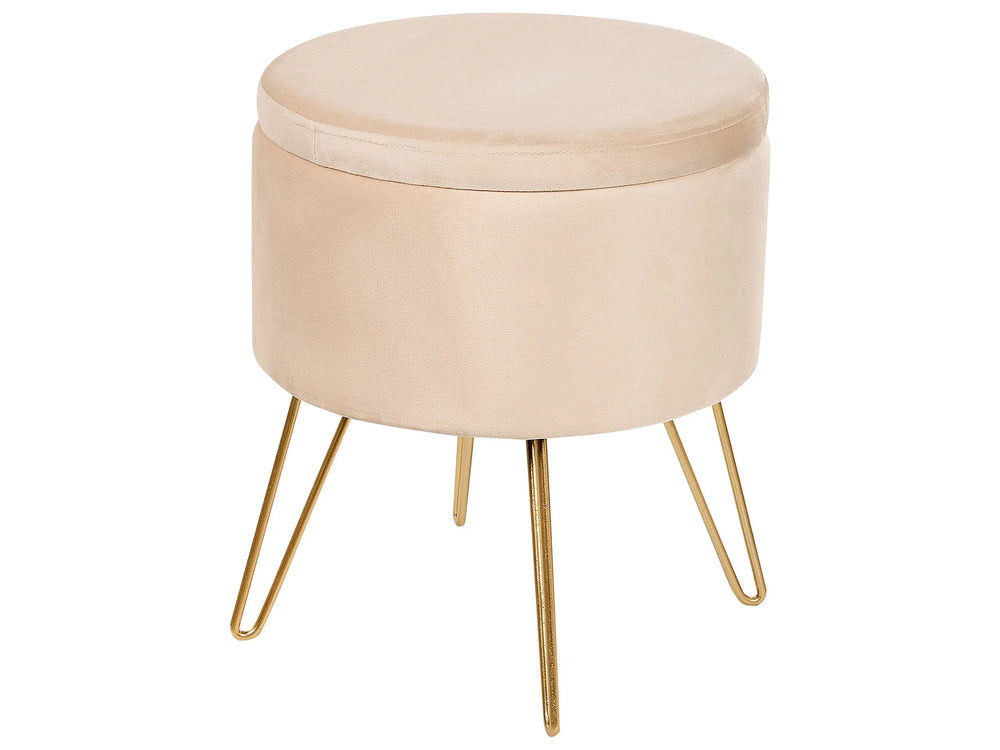 Storage Pouffe Light Beige Velvet 42 x 42 x 44 cm Gold Metal Legs Upholstery Ottoman Footstool Glamour Modern Design Living Room Accessories Beliani is backordered and will ship as soon as it is back in stock.