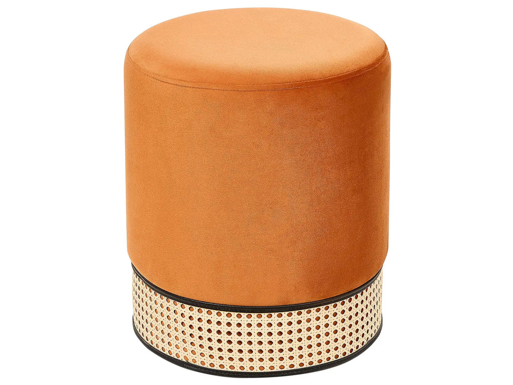 Pouffe Orange Upholstered Velvet Rattan Weave Accent Ring Glamour Stool Beliani