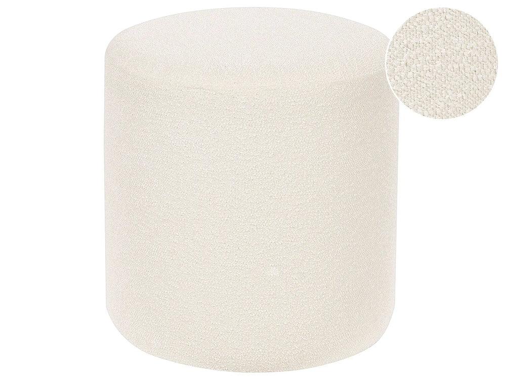 Pouffe White Boucle Round 39 x39 x 41 cm Footstool Accent Upholstery Modern Living Room Bedroom Furniture Beliani