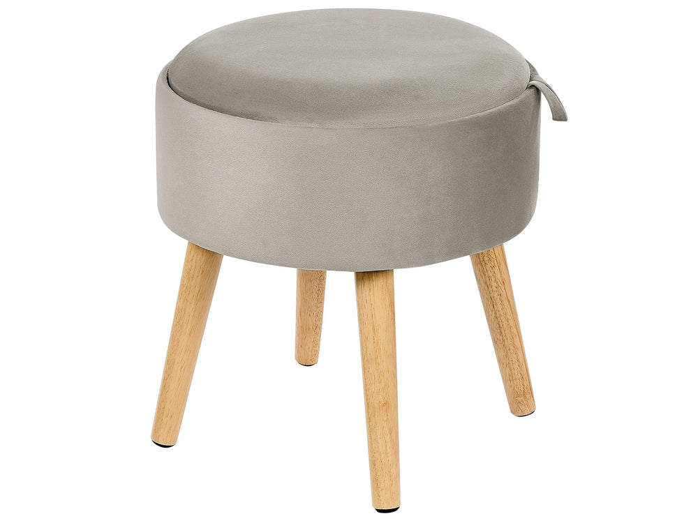Stool Grey Velvet Upholstered Storage Tray Top Glamour Style Beliani