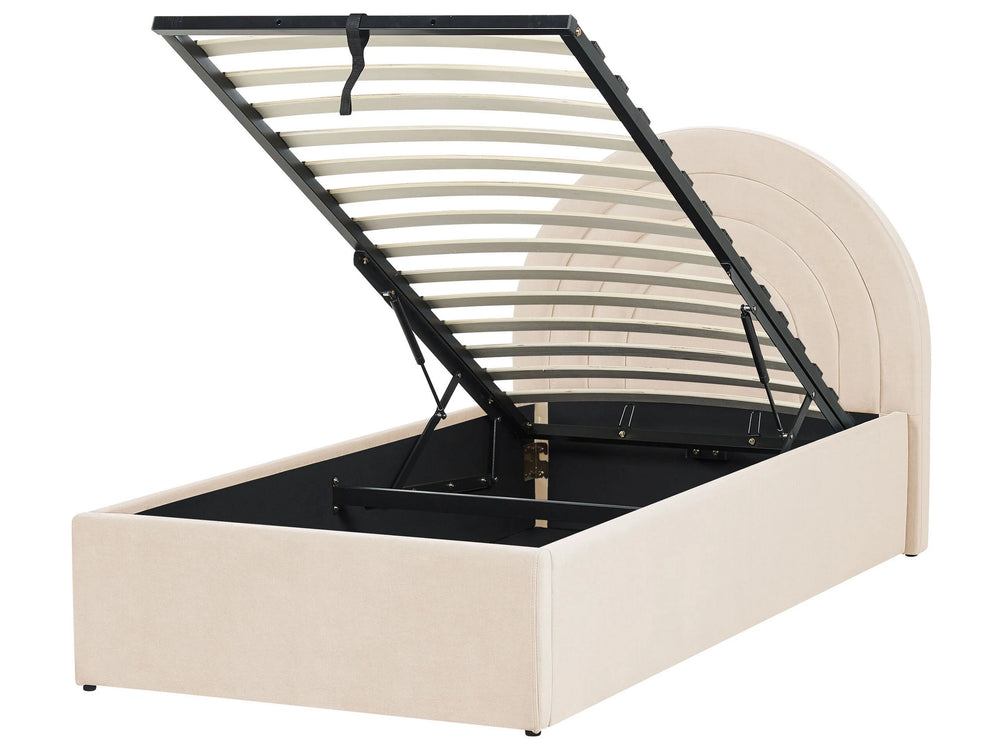 Bed Beige Velvet EU Single Size 3ft Minimalist Retro Design Ottoman Storage Slatted Base Half-Round Headboard Beliani
