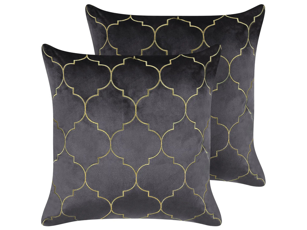 Set of 2 Decorative Cushions Grey Quatrefoil Pattern 45 x 45 cm Foil Print Moroccan Clover Glamour Beliani is backordered and will ship as soon as it is back in stock.