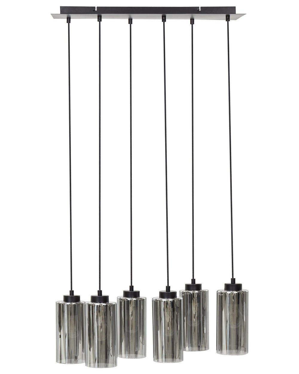 Hanging Lamp Grey and Black Iron Base Glass Smoked Shade 6 Light Point Home Accessories Illumination Beliani