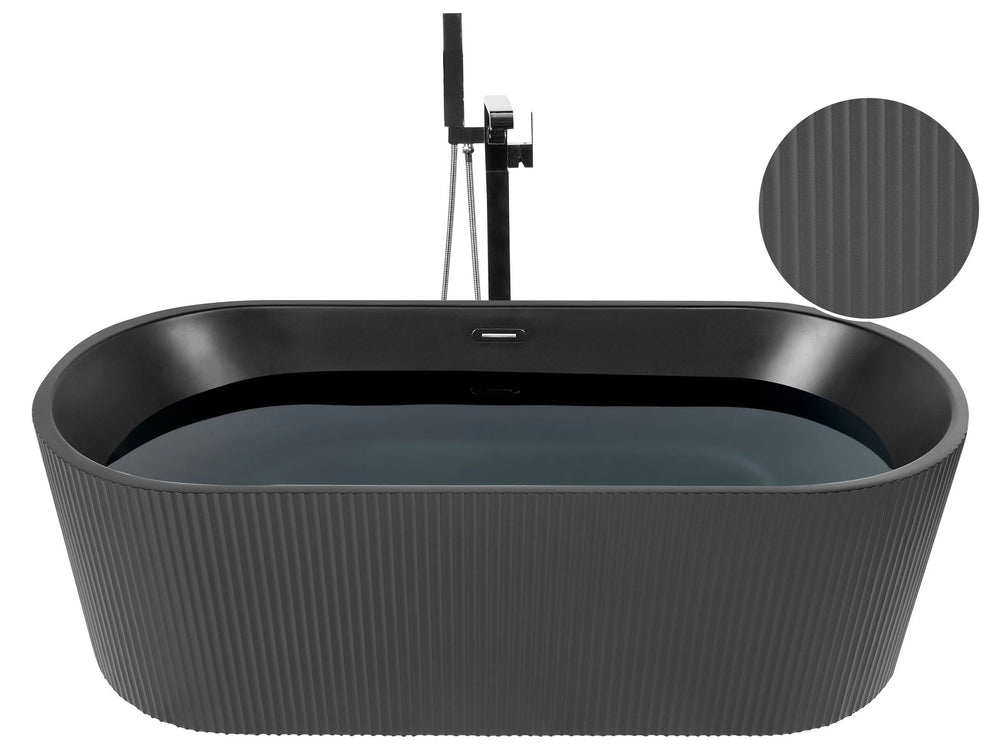Freestanding Bath Matt Black Acrylic 169 x 80 cm Oval Shape Fluted Finish Modern Style Bathroom Beliani