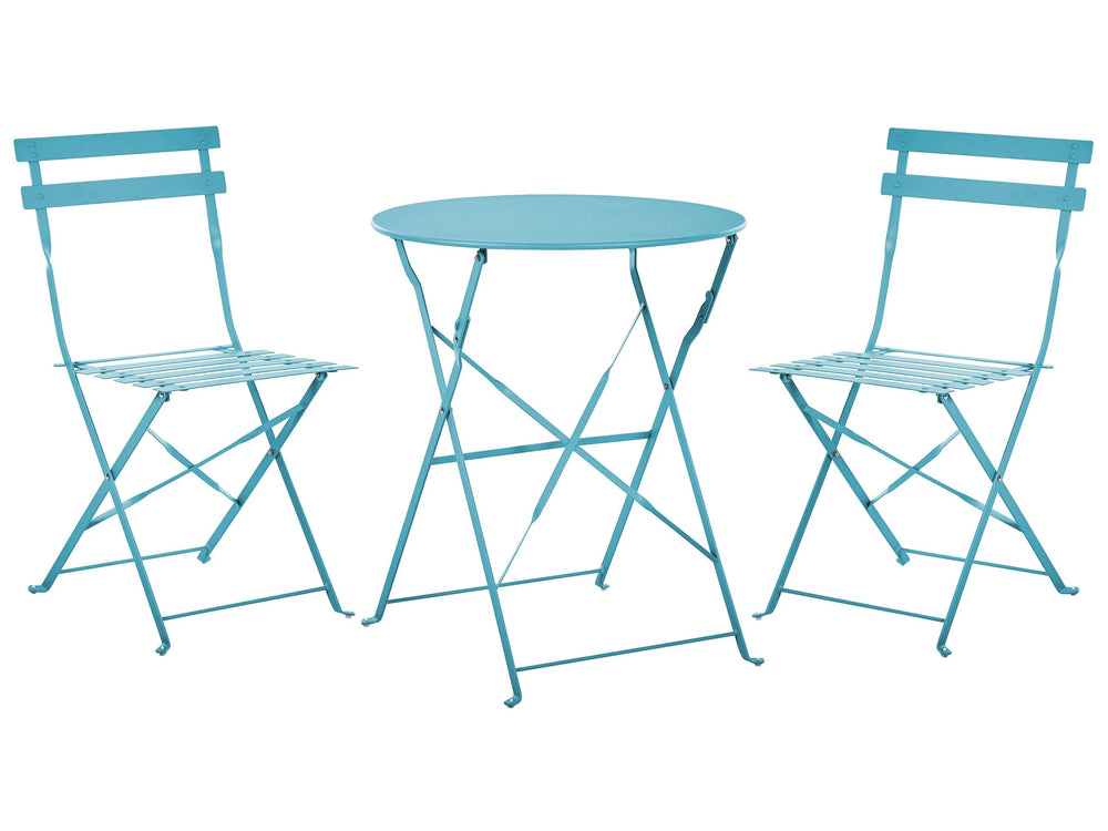 3 Piece Bistro Set Sea Blue Metal Folding Slatted Seat Back Outdoor Beliani