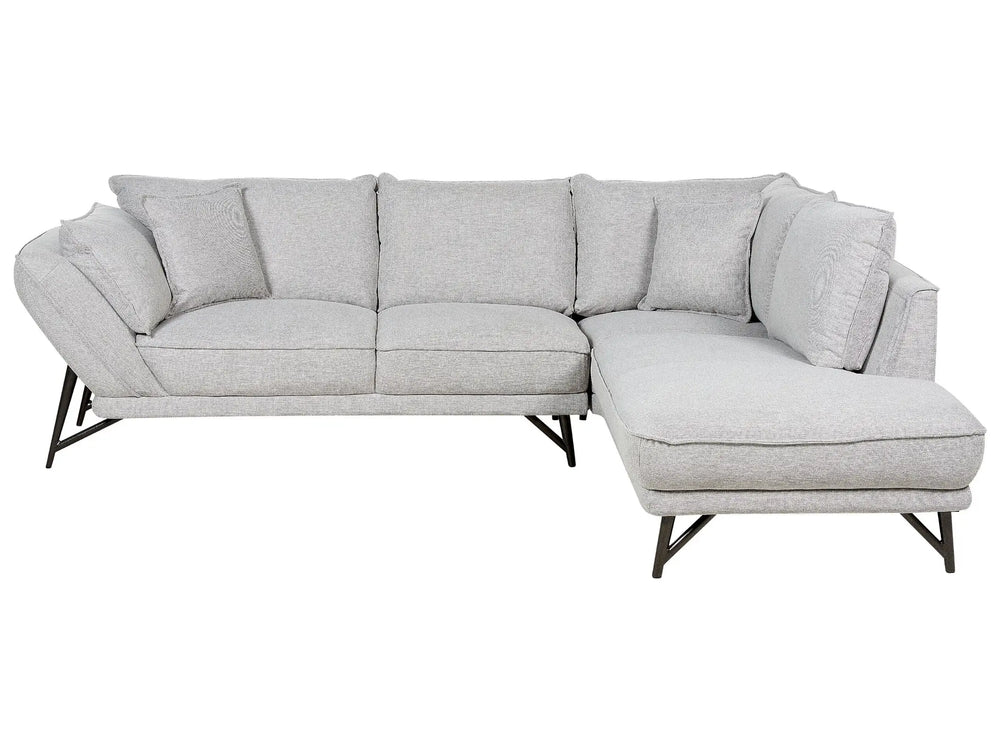 Corner Sofa Light Grey Linen Fabric Upholstery Metal Legs Left Hand 3 Seater Couch Scatter Back Toss Pillows Modern Beliani is backordered and will ship as soon as it is back in stock.