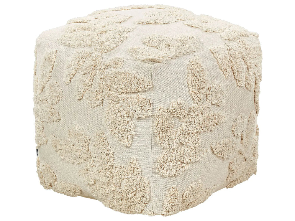 Pouffe Beige Cotton 45 x 45 x 45 cm With EPS Filling Thick Cover Tufted Pattern Boho Beliani