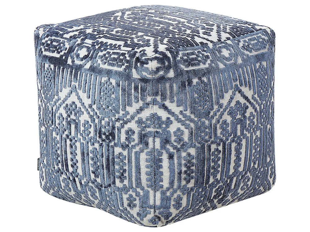 Pouffe Blue Polyester Viscose 50 x 50 x 50 cm With EPS Filling Thick Cover Tufted Pattern Boho Beliani