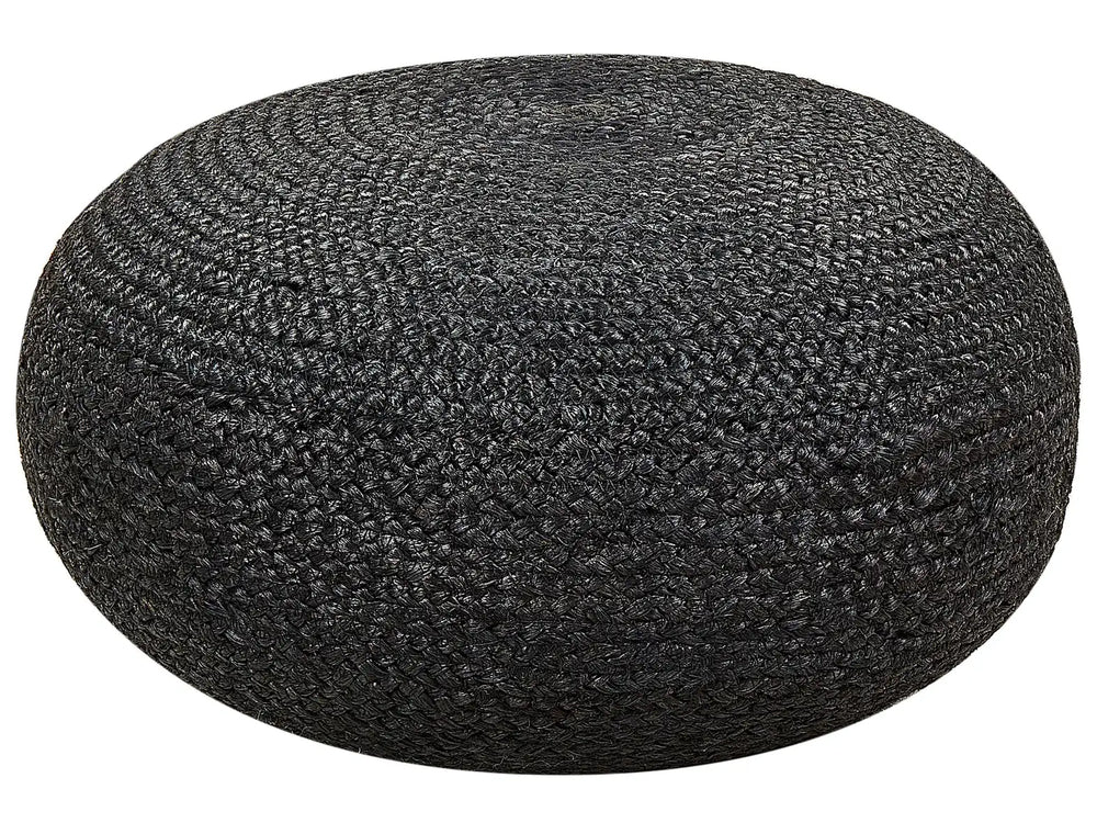 Pouffe Black Jute Woven 50 cm EPS Filling Round Boho Style Ottoman Footstool Beliani