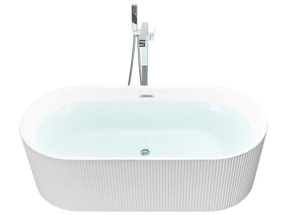 Freestanding Bath Matt White Acrylic 169 x 80 cm Oval Shape Fluted Finish Modern Style Bathroom Beliani