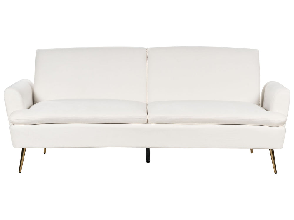 Sofa Bed Off-White Velvet Upholstery 3 Seater Click Clack Sleeping Function Golden Metal Legs Beliani