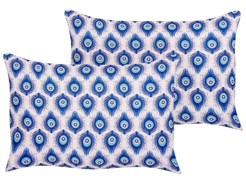 Set of 2 Garden Cushions Multicolour Polyester Peacock Pattern 40 x 60 cm Modern Outdoor Decoration Water Resistant Beliani