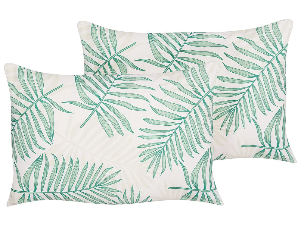 Set of 2 Garden Cushions Beige and Green Polyester Palm Leaf Motif Pattern 40 x 60 cm Modern Outdoor Decoration Water Resistant Beliani