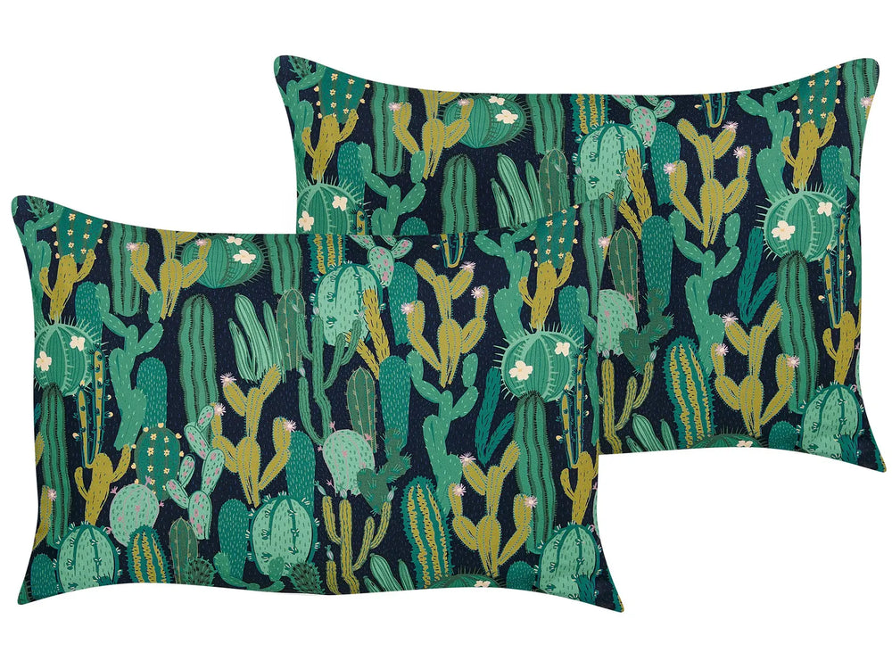 Set of 2 Garden Cushions Green Polyester Cactus Pattern 40 x 60 cm Rectangular Modern Outdoor Patio Water Resistant Beliani
