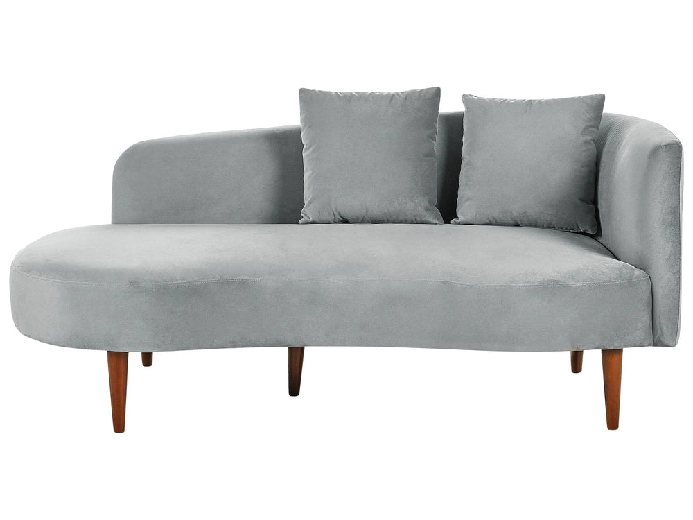 Chaise Lounge Light Grey Velvet Polyester Upholstery Right Hand Dark Wood Legs Extra Throw Pillows Modern Design Living Room Furniture Beliani is backordered and will ship as soon as it is back in stock.