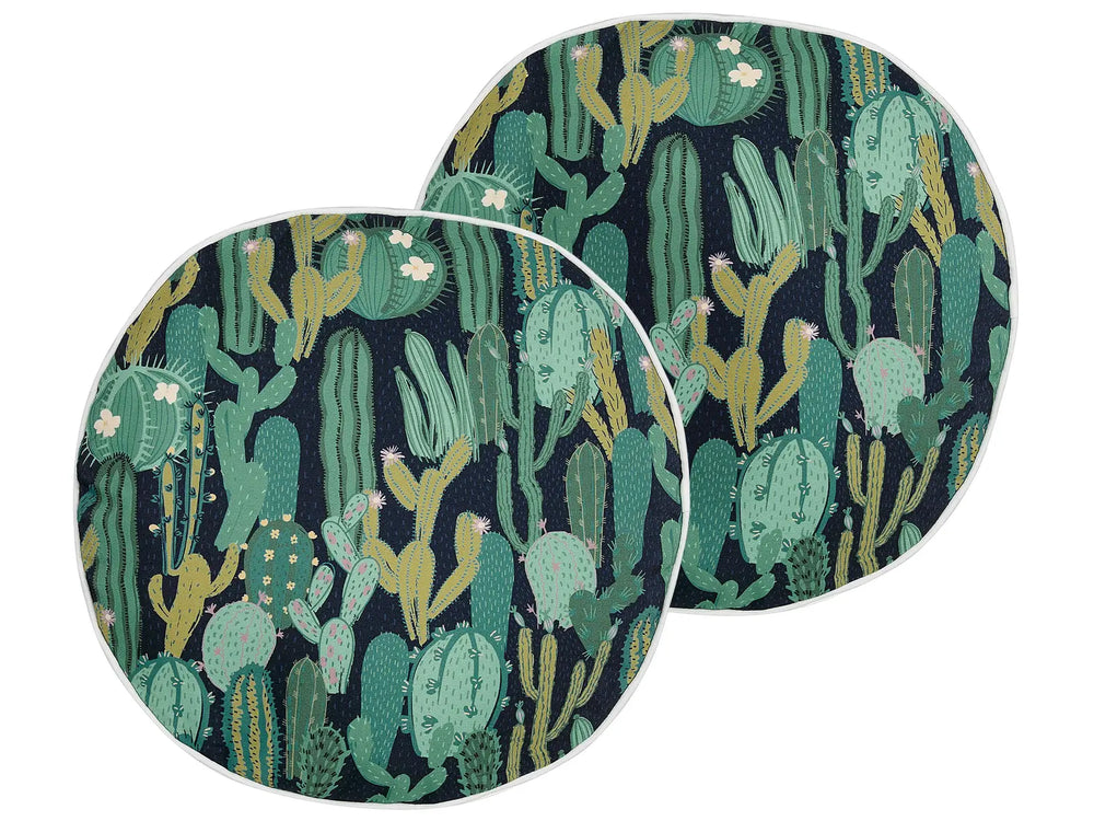 Set of 2 Garden Cushions Green Polyester Cactus Pattern 40 cm Round Modern Outdoor Patio Water Resistant Beliani