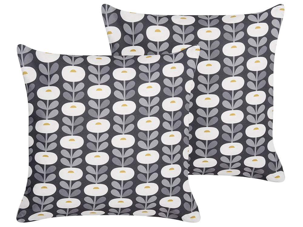Set of 2 Garden Cushions Grey Polyester 45 x 45 Geometric Pattern Modern Outdoor Decoration Water Resistant Beliani