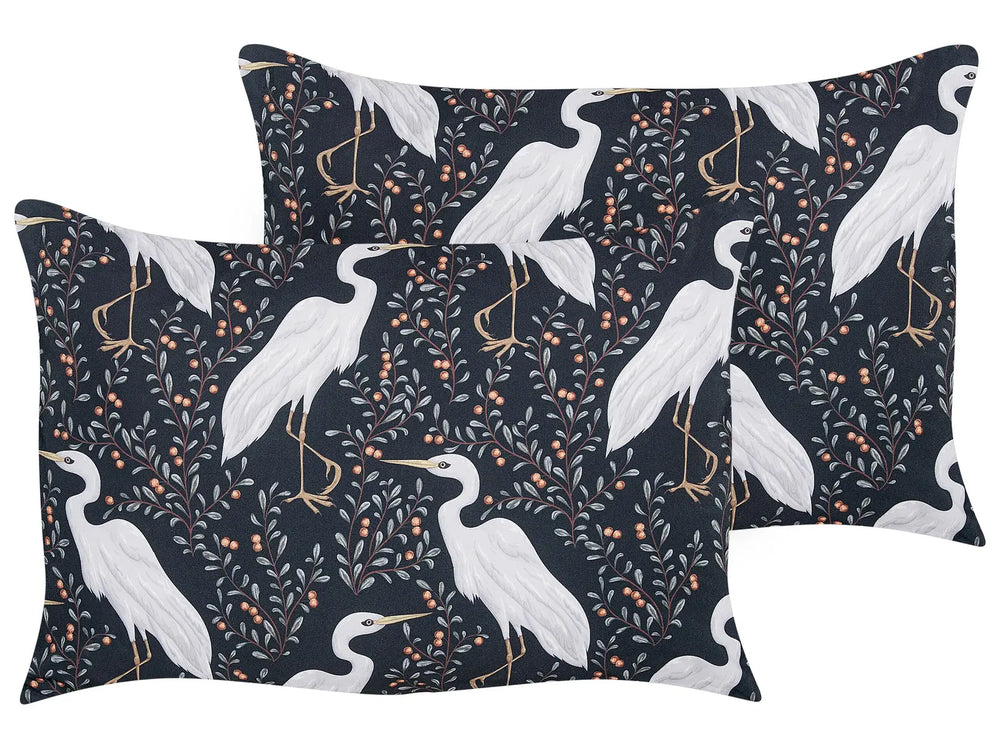 Set of 2 Garden Cushions Black Polyester 40 x 60 cm Bird Motif Modern Outdoor Decoration Water Resistant Beliani