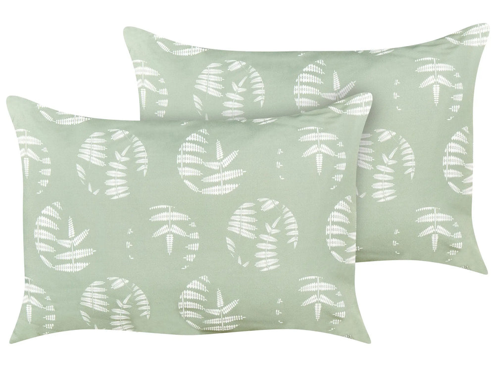 Set of 2 Garden Cushions Green Polyester 40 x 60 cm Leaf Pattern Motif Modern Design Throw Scatter Pillow Beliani