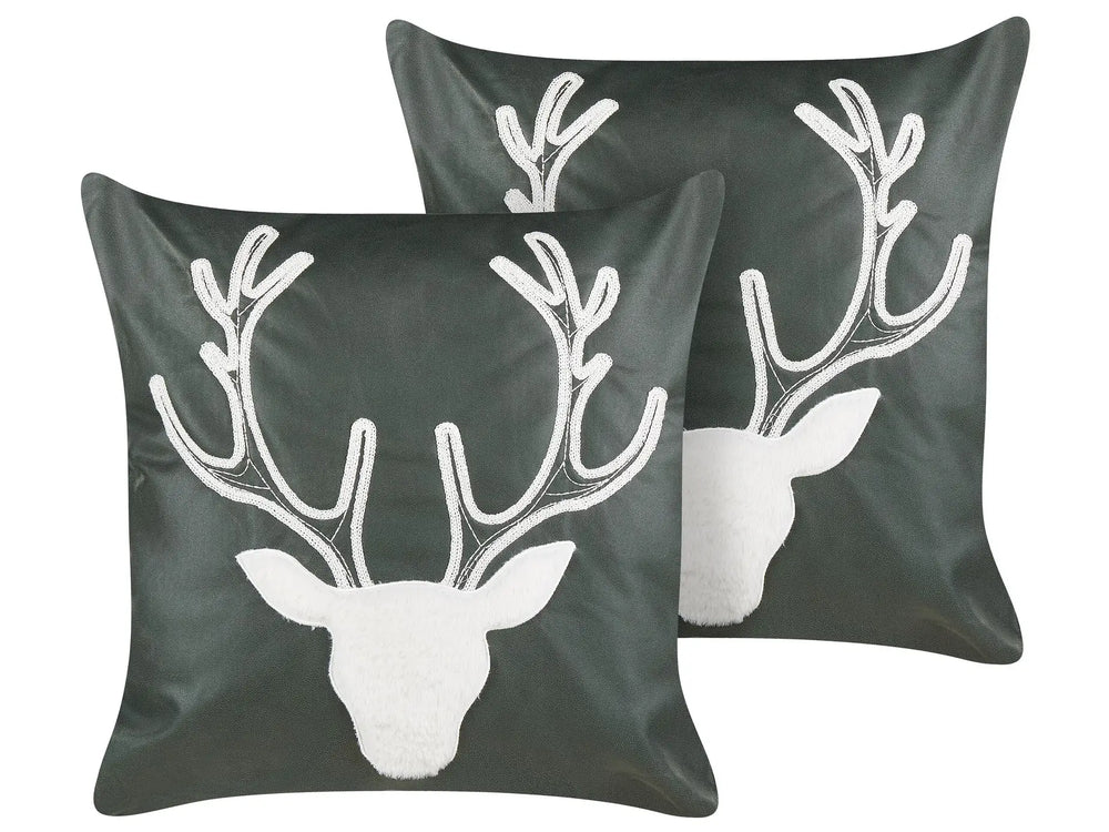 Set of 2 Scatter Cushions Green Velvet 45 x 45 cm Reindeer Motif Christmas Accessories Festive Decor Beliani