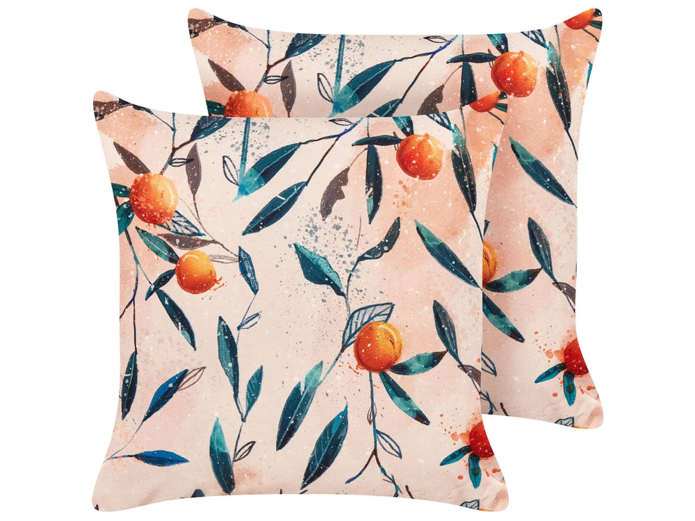 Set of 2 Garden Cushions Multicolour Polyester 45 x 45 Leaf Pattern Modern Outdoor Decoration Water Resistant Beliani