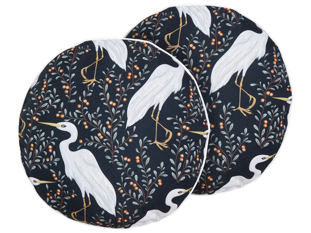 Set of 2 Garden Cushions Black Polyester 40 cm Round Bird Motif Modern Outdoor Decoration Water Resistant Beliani