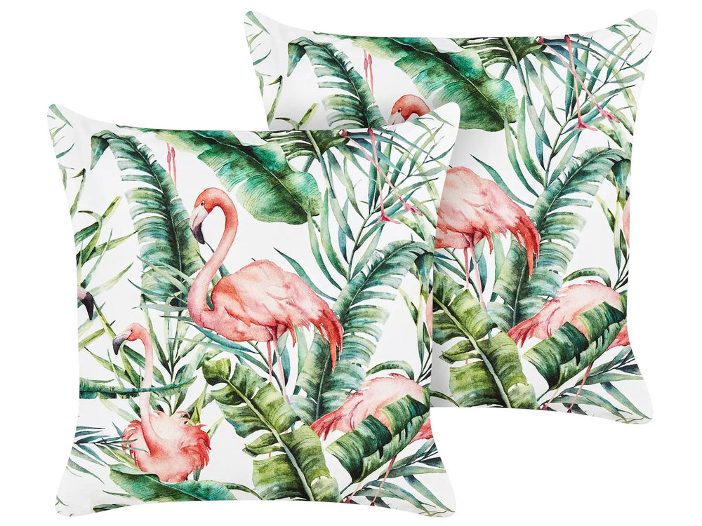 Set of 2 Outdoor Cushions Multicolour Polyester 45 x 45 cm Square Flamingo Print Pattern Scatter Pillow Garden Patio Beliani is backordered and will ship as soon as it is back in stock.