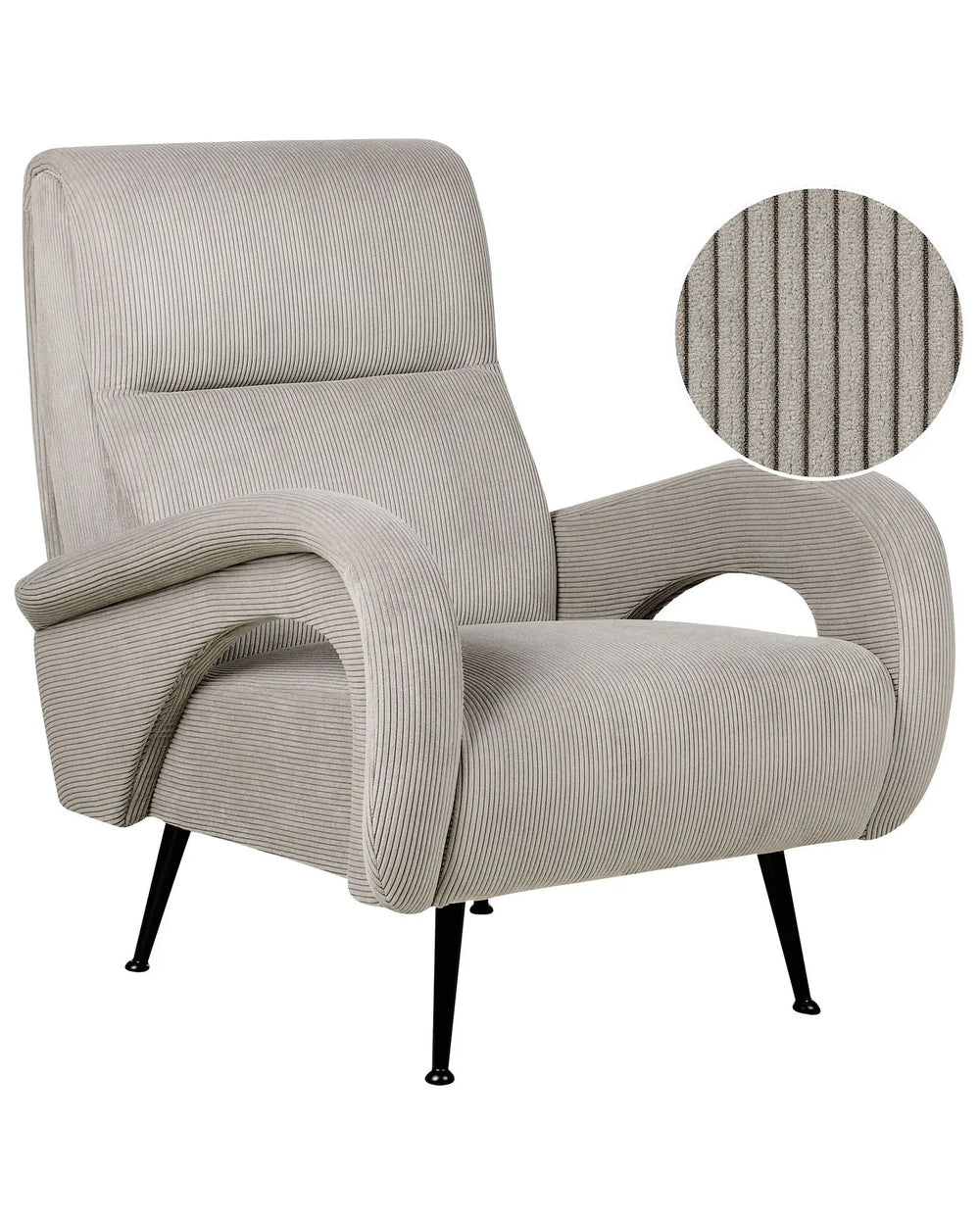 Armchair Grey Jumbo Cord Corduroy Upholstered Retro Style Beliani