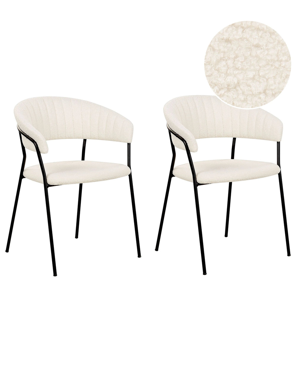 Set of 2 Dining Chairs Off-White Boucle Fabric Upholstery Black Metal Legs with Armrests Curved Backrest Modern Contemporary Design Beliani