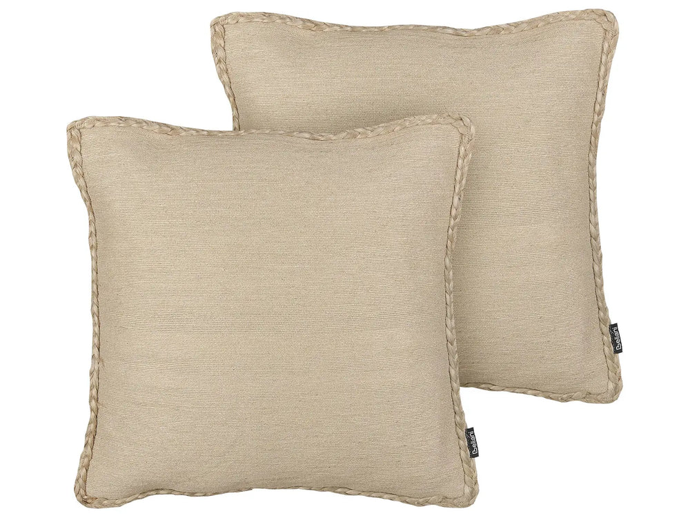 Set of 2 Decorative Cushions Beige Jute 45 x 45 cm Woven Removable with Zipper Braided Edging Boho Decor Accessories Beliani is backordered and will ship as soon as it is back in stock.