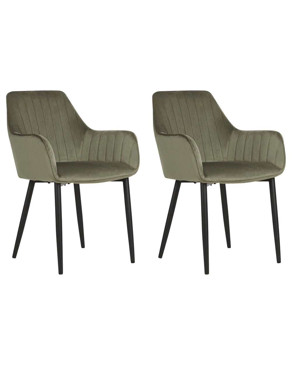 Set of 2 Dining Chairs Olive Green Velvet Armrests Black Metal Legs Retro Glam Beliani