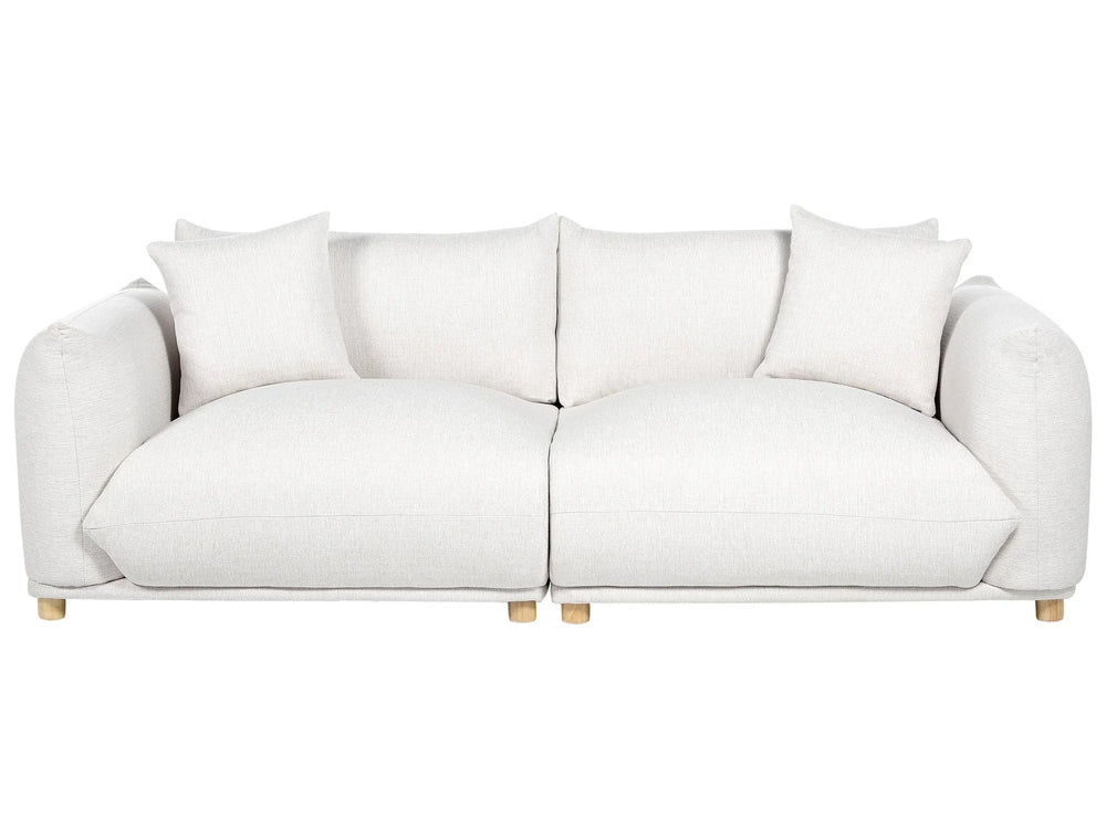 Fabric Sofa OIff-White Polyester Upholstery 3 Seater with Scatter Cushions Living Room Settee Beliani