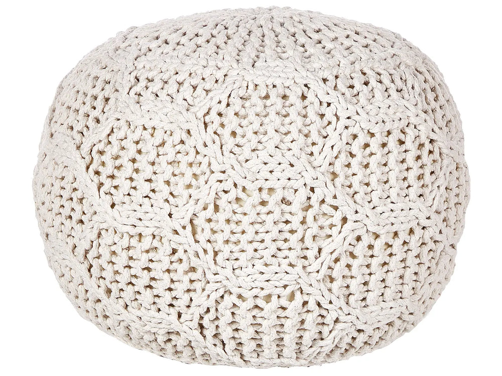Pouf Ottoman Footstool Light Beige 50 x 50 x 35 cm Handmade Macrame 100% Cotton Beads Filling Round Beliani
