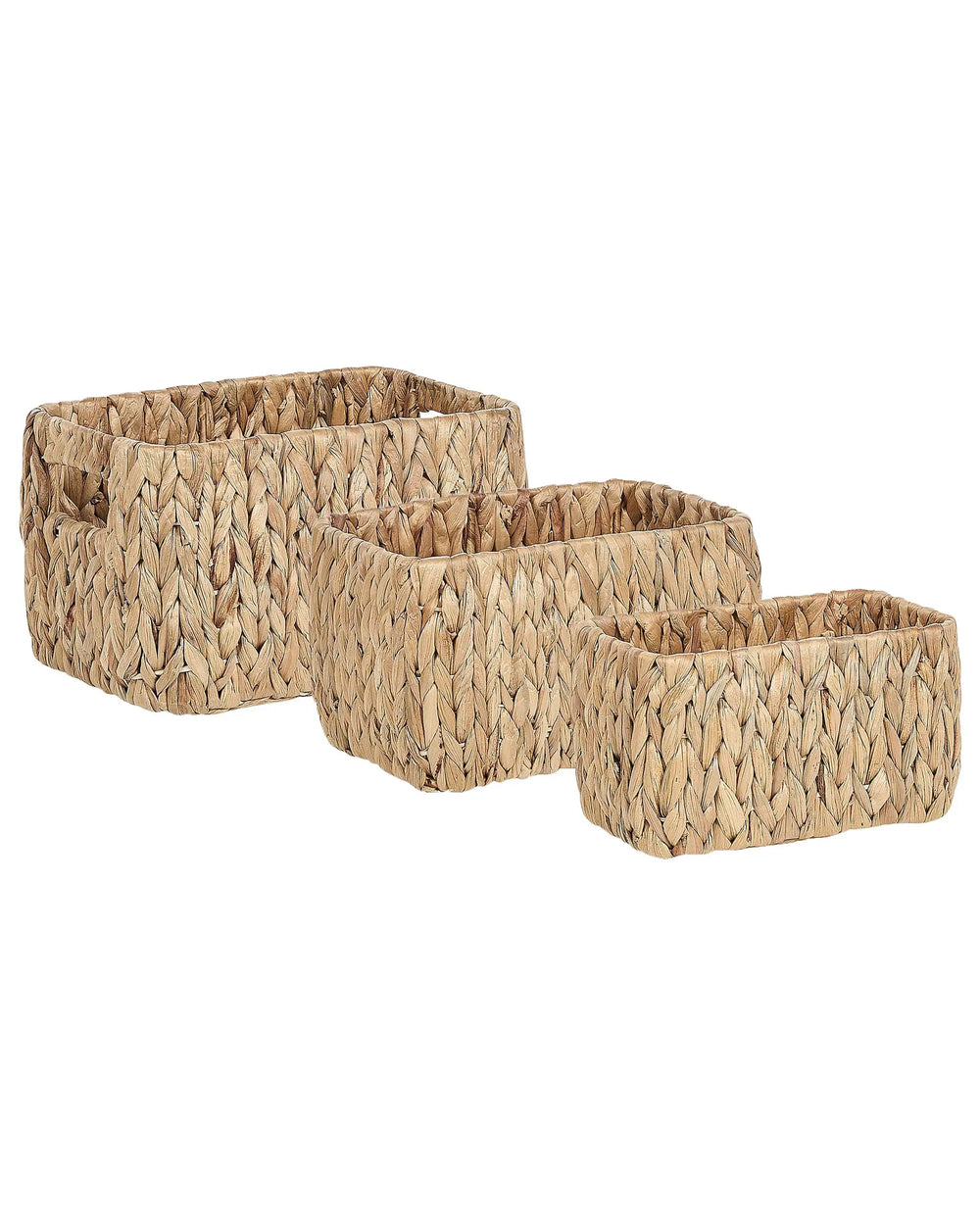 Set of 3 Storage Baskets Light Water Hyacinth Handmade with Handles Shelving Box Boho Design Beliani