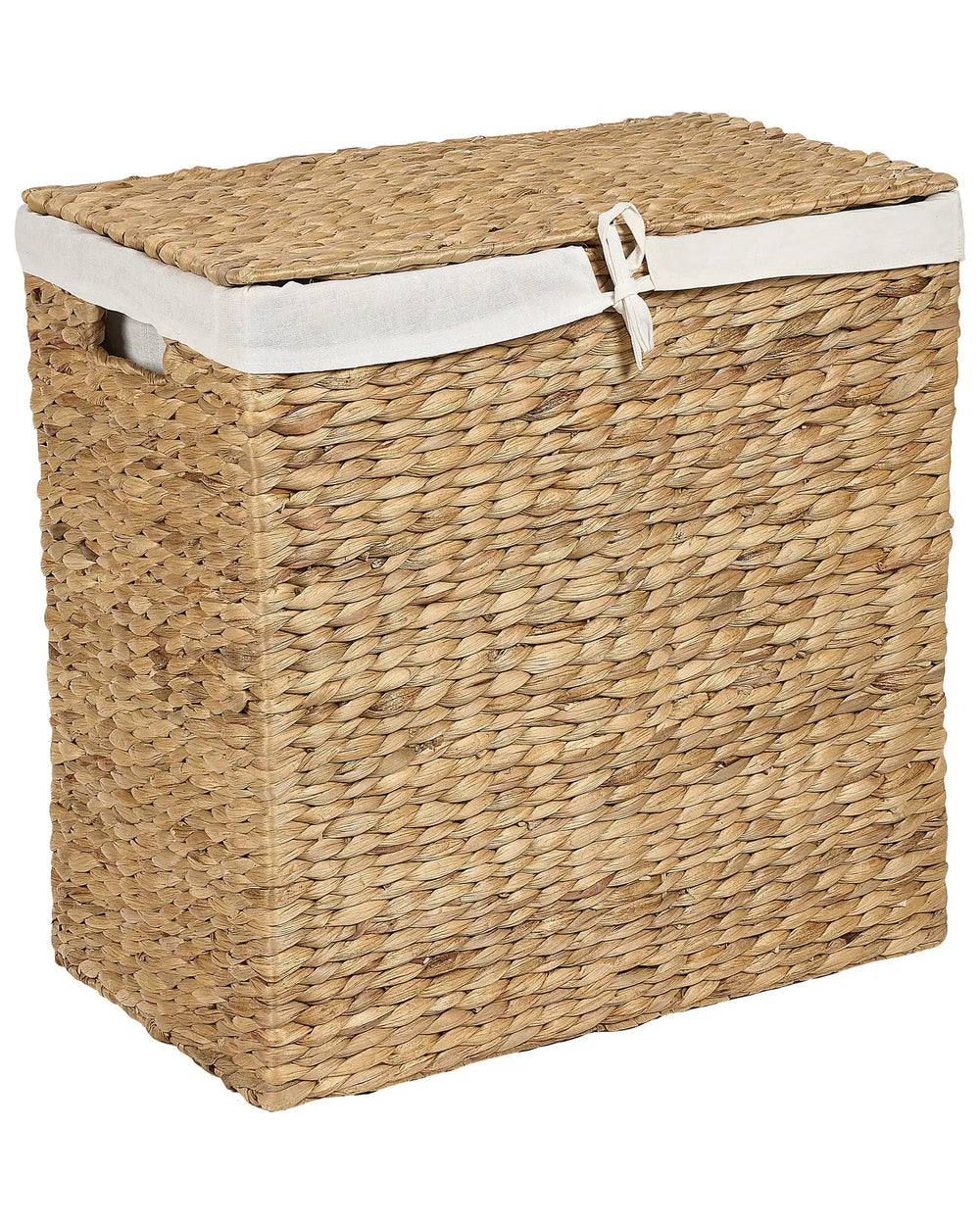 Basket with Lid Light Water Hyacinth Laundry Hamper 2-Compartments with Handles Beliani