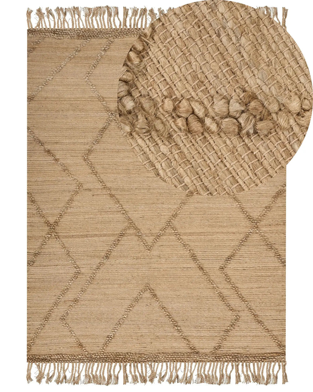 Area Rug Beige Jute 160 x 230 cm Handwoven Lines Geometric Pattern with Tassels Natural Boho Style Textile Beliani