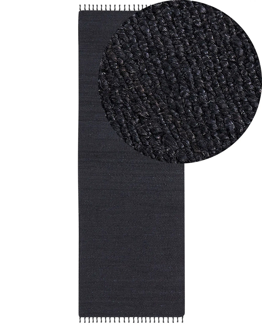 Runner Rug Black Jute 80 x 300 cm Rectangular with Decorative Tassels Handwoven Boho Style Hallway Beliani