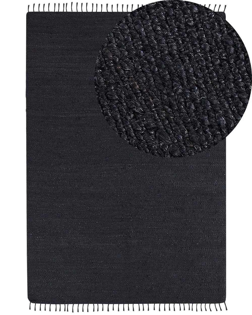 Runner Rug Black Jute 160 x 230 cm Rectangular with Decorative Tassels Handwoven Boho Style Hallway Beliani