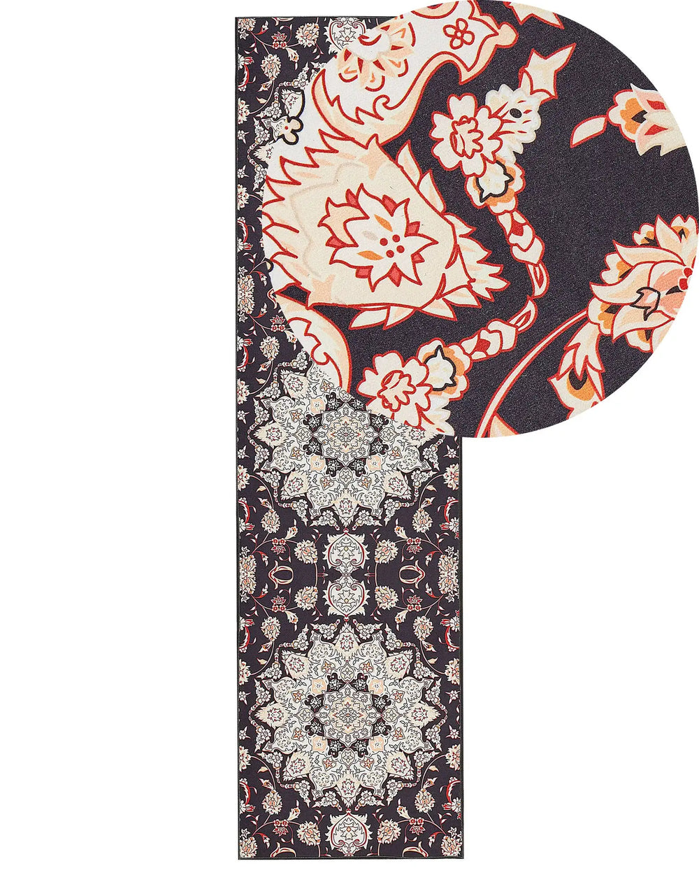 Runner Rug Black and Beige Polyester 80 x 300 cm Oriental Pattern Anti-Slip Bottom Vintage Style Modern Hallway Beliani is backordered and will ship as soon as it is back in stock.