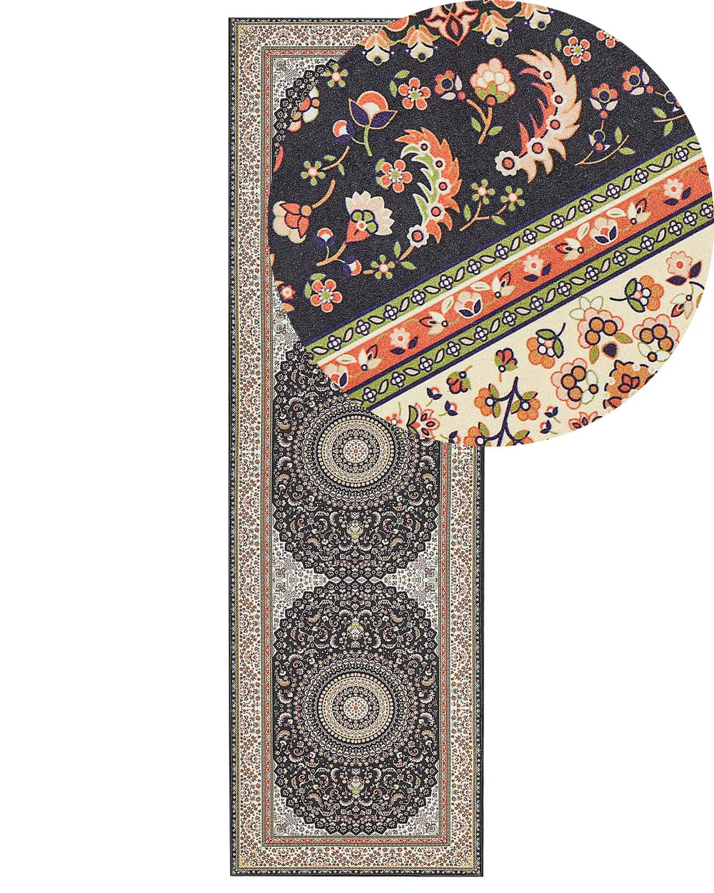Runner Rug Multicolour Polyester 60 x 200 cm Oriental Pattern Anti-Slip Bottom Vintage Style Modern Hallway Beliani
