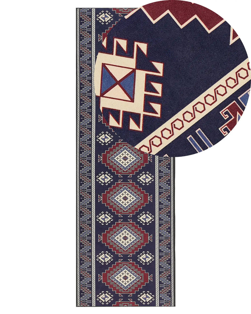 Runner Rug Blue and Red Polyester 80 x 240 cm Oriental Pattern Anti-Slip Bottom Vintage Style Modern Hallway Beliani