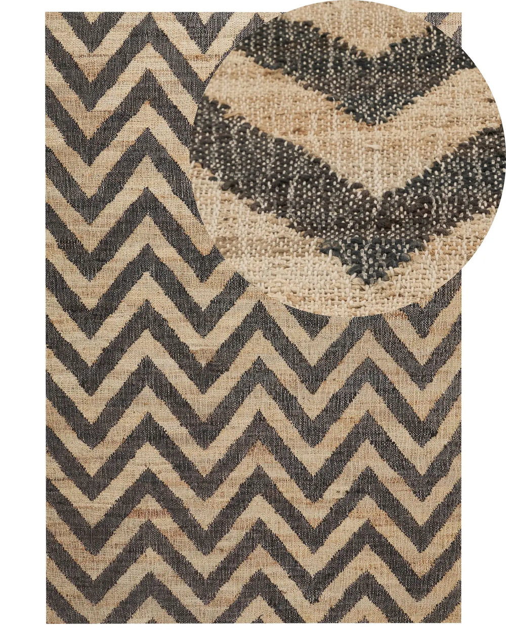 Area Rug Beige Black Jute 160 x 230 cm Braided Handmade Natural Boho Style Textile Beliani