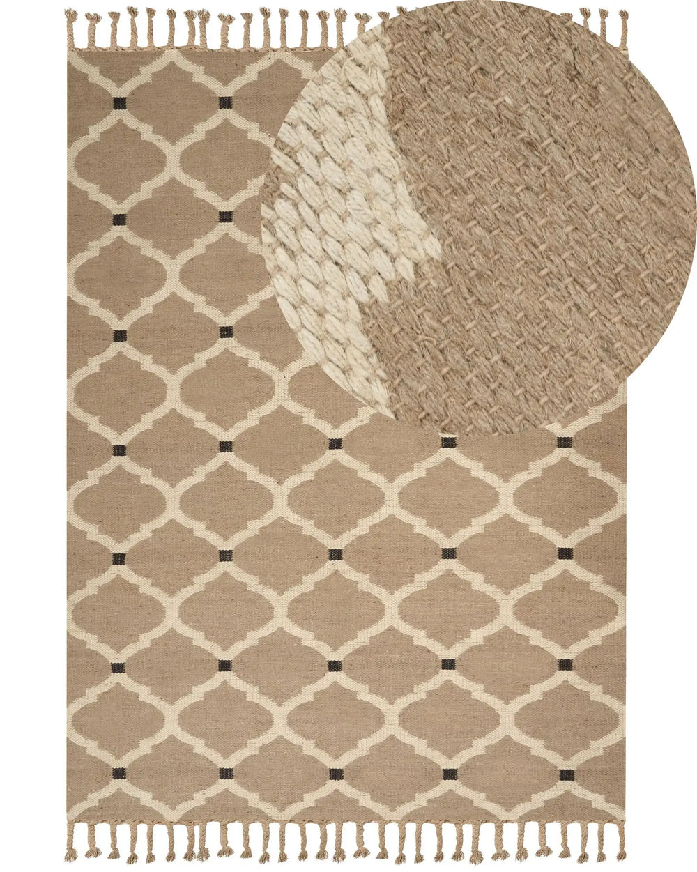 Area Rug Beige Jute Cotton 200 x 300 cm Braided Handmade with Tassels Natural Boho Style Textile Beliani