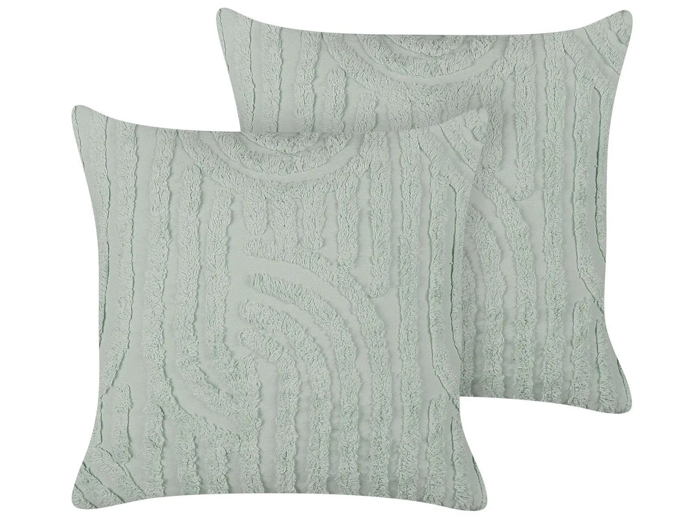 Set of 2 Decorative Cushions Mint Green Cotton Polyester Filling 45 x 45 cm Abstract Pattern Square Modern Home Accessory Living Room Bedroom Beliani