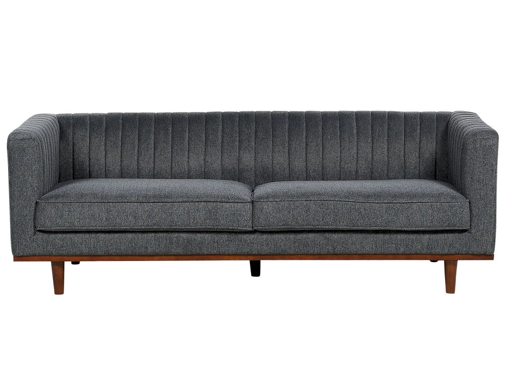Sofa Dark Grey Polyester Upholstered 3-Seater Modern Couch Style Living Room Wide Armrests Tufted Backrest Beliani